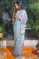 Crepe Saree with Sanganer Hand Block Print Flower. This elegant crepe saree is crafted from soft, flowy fabric that drapes beautifully. Adorned with traditional Sanganer hand block printing. Each flower is carefully imprinted using age-old wooden blocks, giving the saree a unique handcrafted charm. The smooth texture of crepe combined with the vibrant yet subtle floral designs make it perfect for casual elegance, or office wear.
