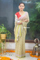 The variation of colors may appear slightly different due to screen brightness. The blouse worn by the model is for display only. The saree is accompanied by its own blouse piece.