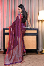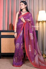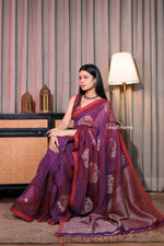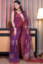 A splendid addition to your festive and wedding wardrobe, this saree brings together the natural elegance of linen with the luxurious shimmer of zari. Handwoven with fine craftsmanship, it reflects cultural heritage while offering modern sophistication making it an ideal choice for grand celebrations and timeless occasions.